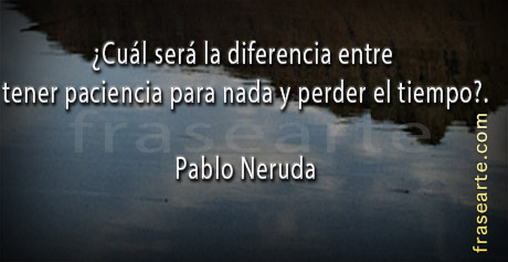 ¡Ama mientras la noche colapsa!”. Frases famosas de Pablo Neruda, pensamientos y reflexiones Compartir frases de Pablo Neruda Conoce el significado de los nombres, nombres de mujer, nombres de varón Nombres para bebés de niñas y niños Descubre el significado, las características y el origen de los nombres de tus familiares y amigos. Pablo Neruda sconseqüências, decisões, escolhas, viver saiba mais sobre esta frase ›› “Algum dia em qualquer parte, em qualquer lugar indefectivelmente te encontrarás a ti mesmo, e essa, só essa, pode ser a mais feliz ou a mais amarga de tuas horas”.